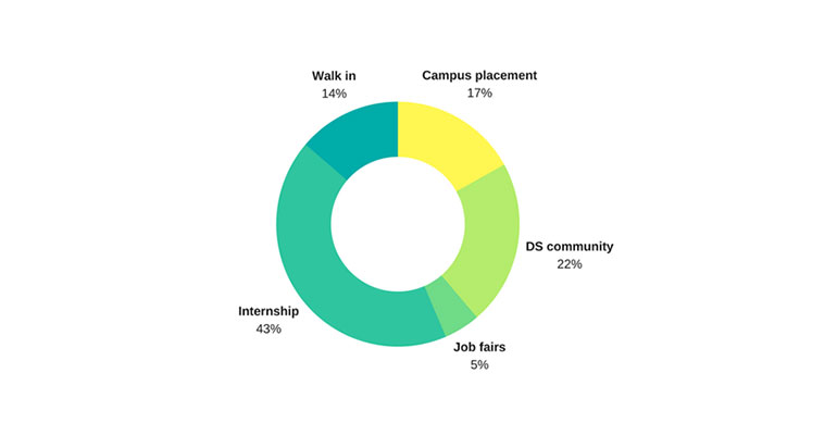 As per study by analyticsindiamag.com on data science survey-2018, it reveals the fact that internship was the best way to make your way into a company. Also, there were approximately about 22% of the peoples says that networking or data science groups/communities are the best way to enter into the Data science field.